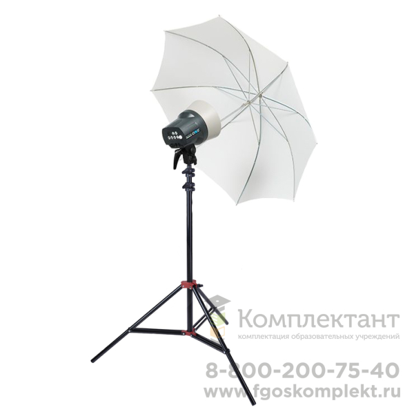 Профессиональный комплект для фотографий на документы. Данный комплект построен на базе студийной вспышки от швейцарской компании Elinchrom D-Lite RX ONE мощностью 100Дж. Особенностью этих моноблоков является ультрамалая масса (0,9 кг) и размеры (19×14×19см) при стабильной работе на любом уровне регулировки мощности в диапазоне 5 ступеней (6−100 Дж) с шагом в 1/10. Встроенный радиомодуль позволяет управлять работой прибора через iPad, iPhone, iPod Touch, а также через компьютеры WIN и Mac. Так же предусмотрен автоматический контроль температуры, есть крепление для зонтов. На приборах D-Lite RX ONE могут устанавливаться почти все насадки Elinchrom, кроме софтбоксов размером более 135 см. Моноблок D-Lite RX ONE поставляется с пилотной и импульсной лампами, синхро шнуром, сетевым шнуром и защитным колпаком. Так же в комплект входит белый зонт ø70 см на просвет, который смягчит световой поток и стойка c максимальной высотой до 190 см.
