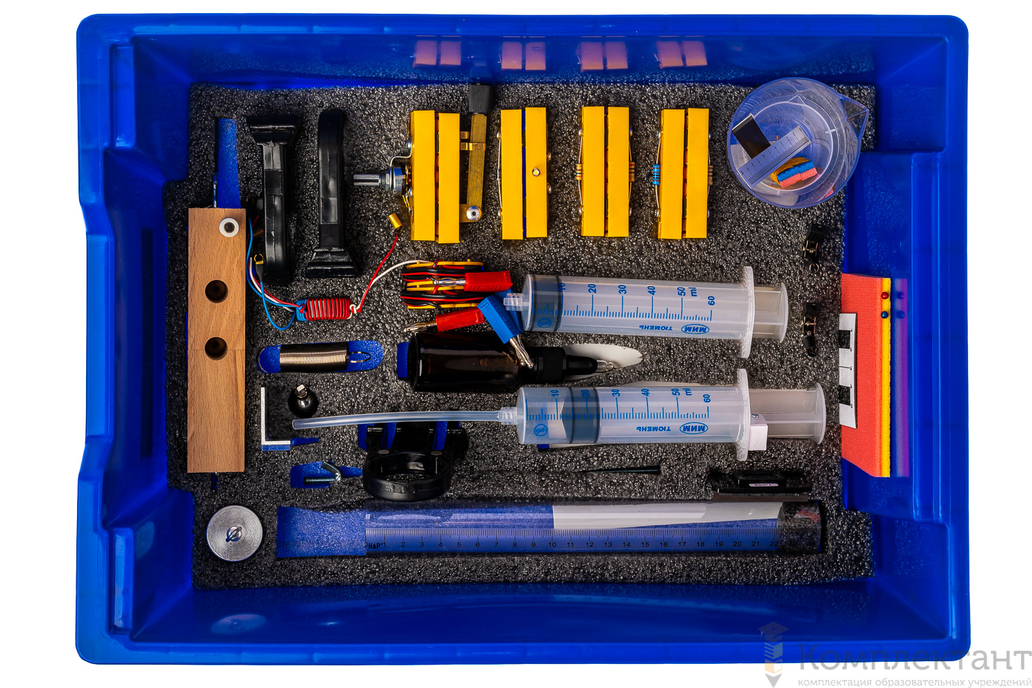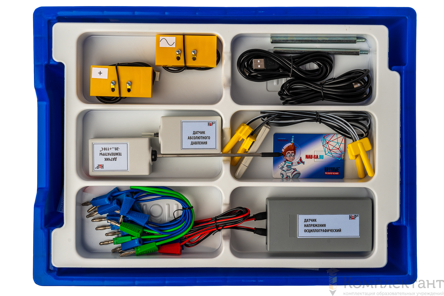 Все оборудование цифровой лаборатории (кроме скамьи лабораторной) укомплектовано в пластиковую систему хранения, который закрывается прозрачной пластиковой крышкой на защелках для обеспечения наблюдения за содержимым. Комплект оборудования и датчики в системе хранения располагаются на ложементе в индивидуальных ячейках.