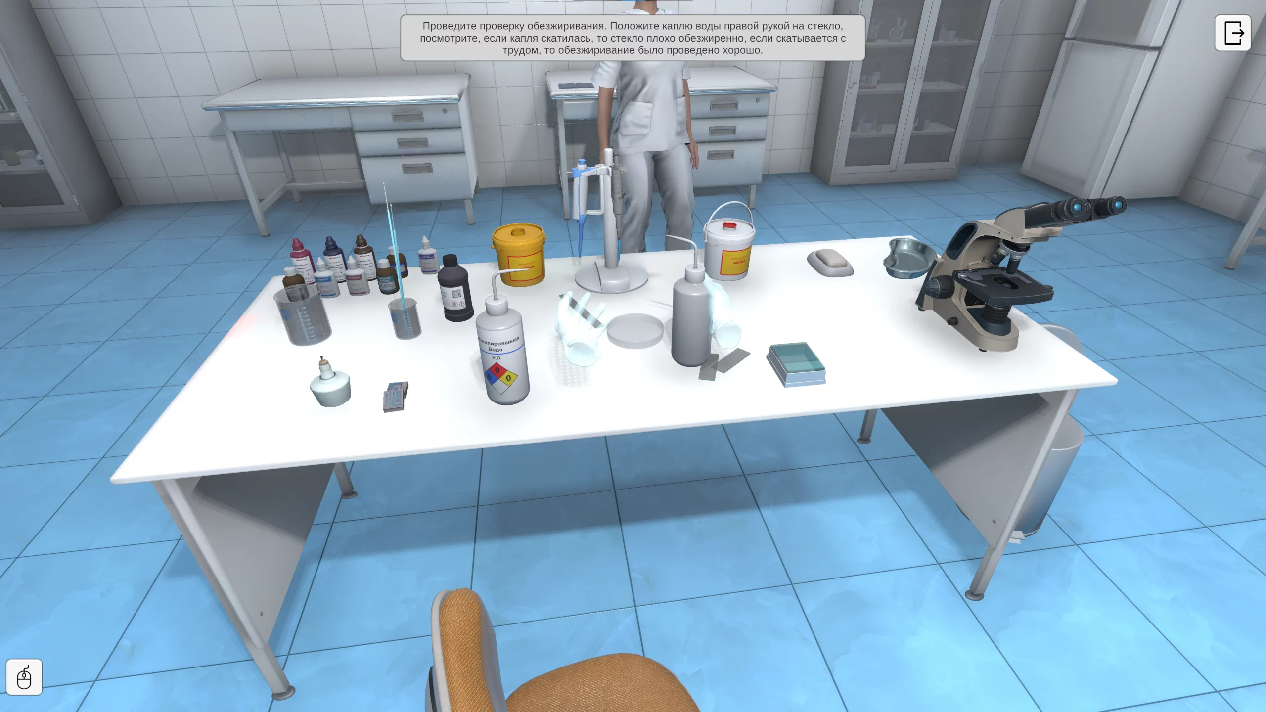 В тренажере реализованы сценарий лабораторных работы с микроскопированием
