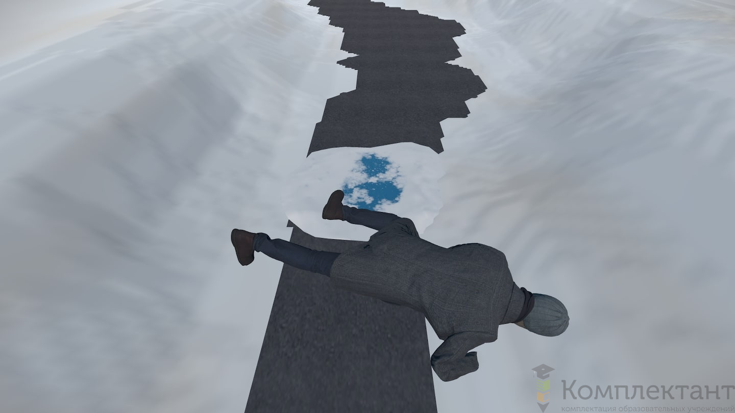 Виртуальный (VR) тренажер «Безопасность по дороге на работу» воссоздает ситуацию, в которой пользователю после аномального снегопада предстоит добраться от машины, припаркованной во дворе, до входа в офис на противоположном конце двора. На его пути будут возникать различного рода препятствия (открытые люки, сосульки на крышах, сброс снега с крыши и др.), которые пользователю необходимо преодолеть.
