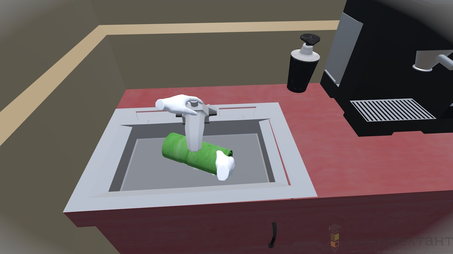 Виртуальный (VR) тренажер «Действия при пожаре в офисе» воссоздает ситуацию, в которой пользователю необходимо спастись из горящего офиса и по возможности потушить пожар. В симуляции можно выбрать условия задачи: силу (слабый, средний или сильный) и место пожара, место начала тренинга и включение оповещения.