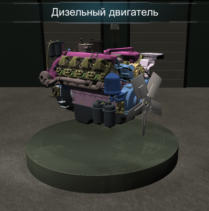 Виртуальное методическое обеспечение позволяет изучать основные элементы внутреннего устройства двигателя грузового автомобиля, системы подачи топлива и принципа работы впрыска.